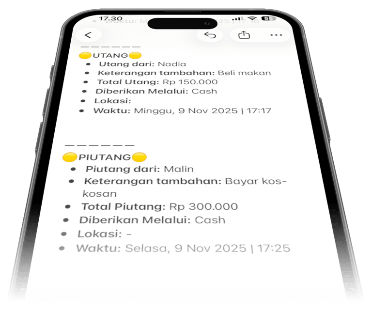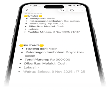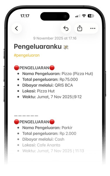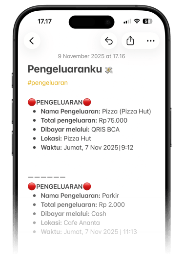 Otomatis tercatat 👉 Langsung masuk ke catatan keuangan di Apple Notes kamu
